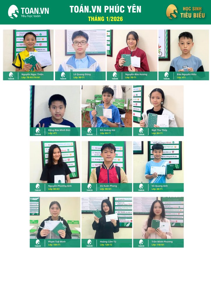Hoạt động vinh danh học sinh tiêu biểu tháng 1 năm 2026 tại TOAN.VN là dịp đặc biệt để ghi nhận những học sinh có tinh thần học tập nghiêm túc. Các em đã thể hiện ý chí bền bỉ và sự tiến bộ rõ rệt trong quá trình rèn luyện.