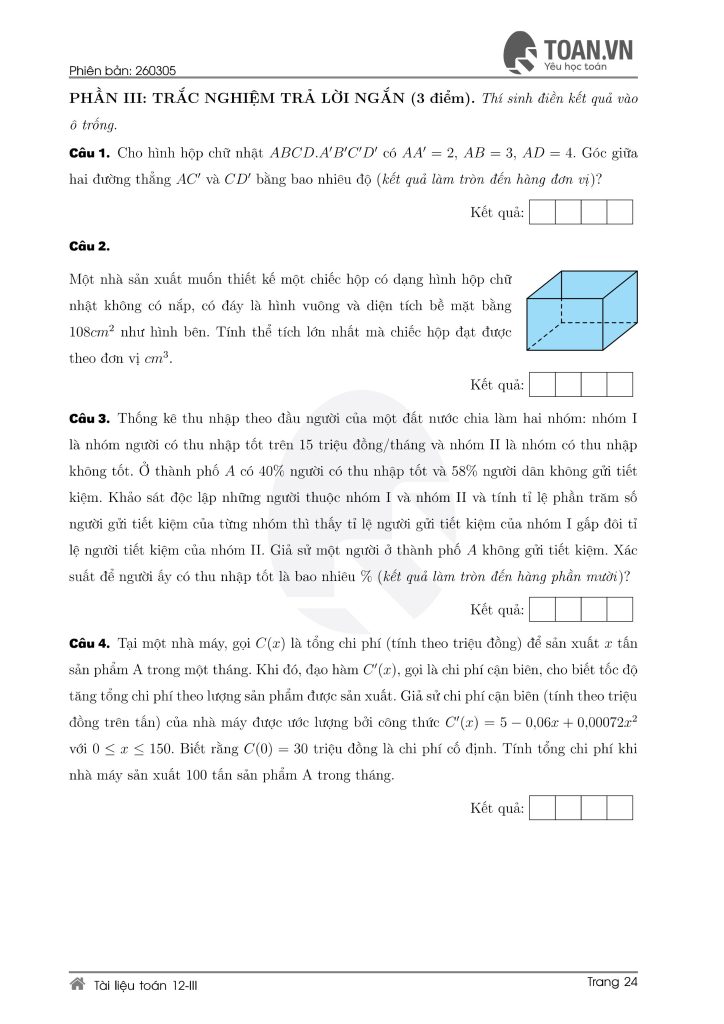 - Xây dựng chiến lược làm bài (làm câu dễ trước, câu khó sau).