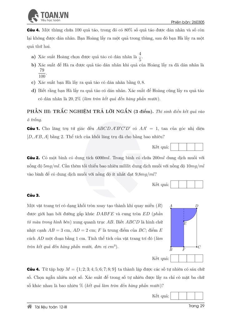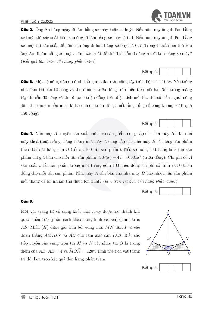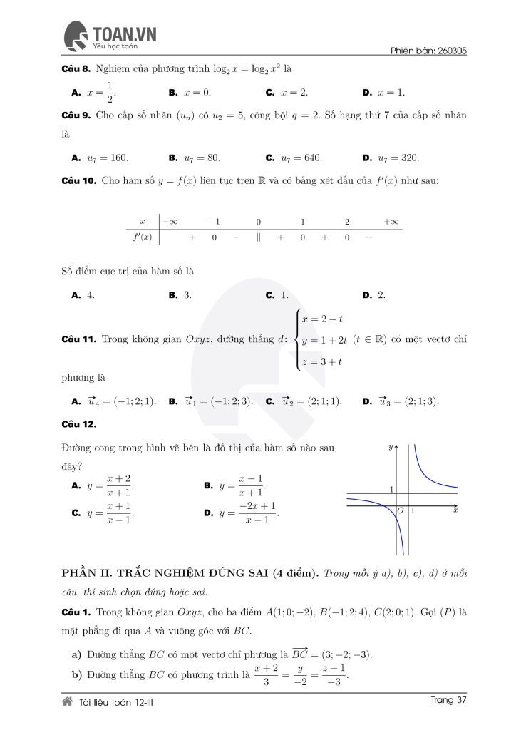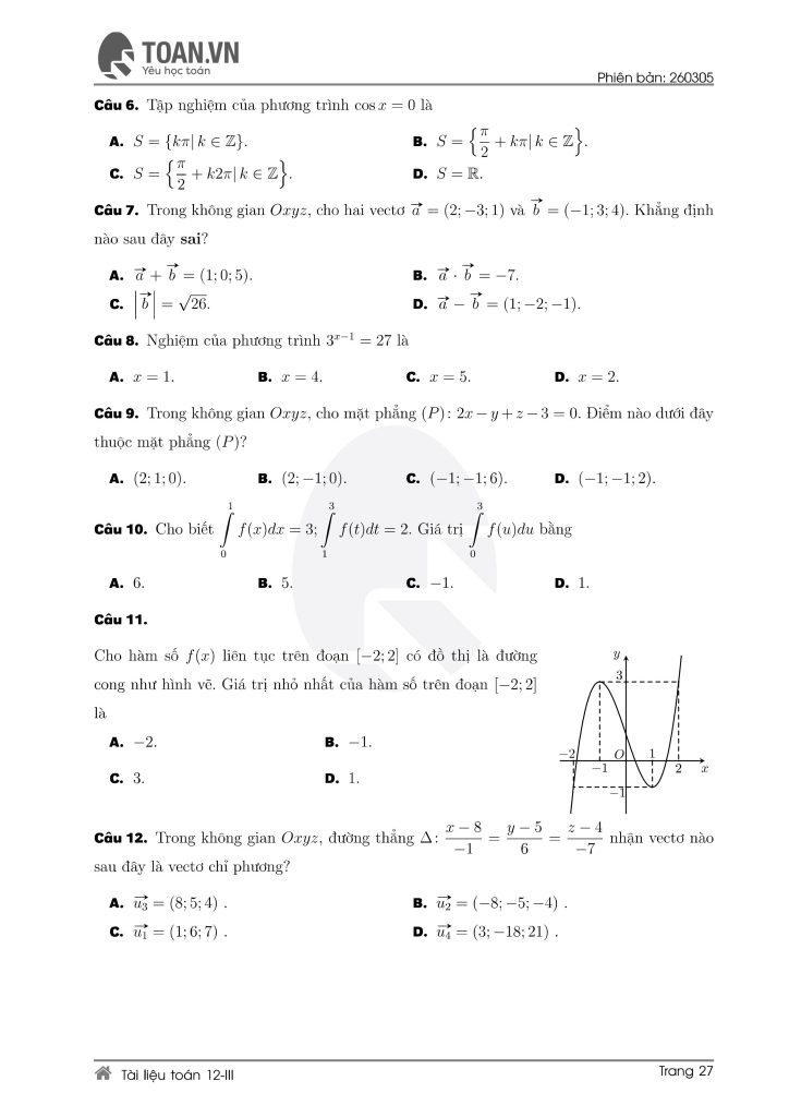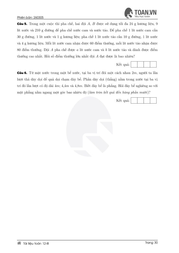 Tổng hợp 5 đề ôn thi Toán lớp 12 mới nhất