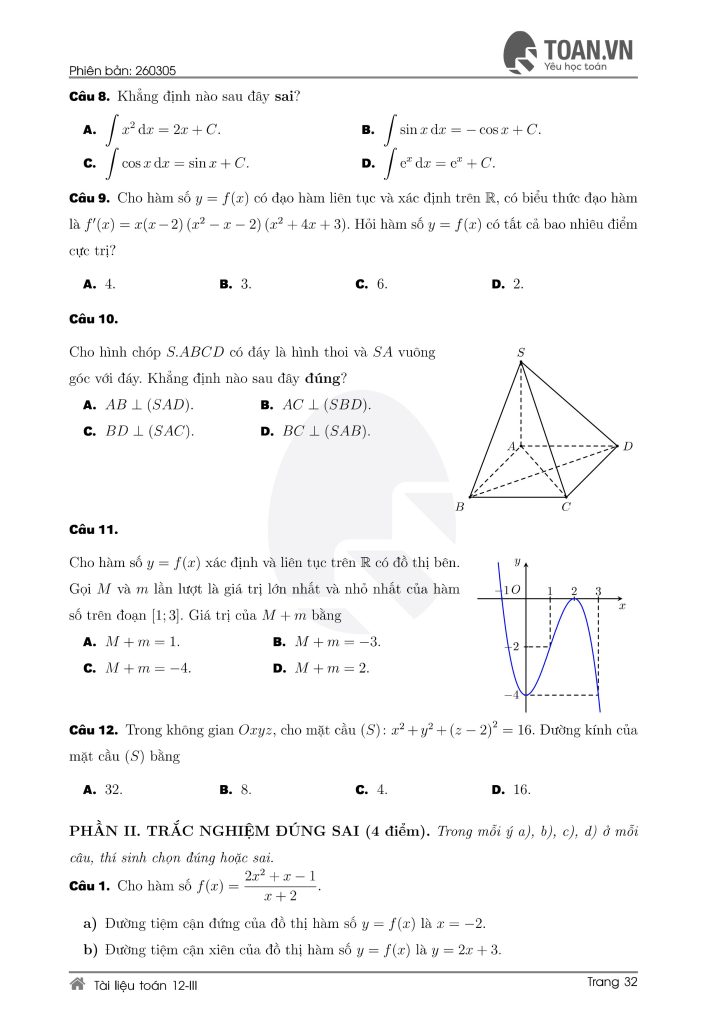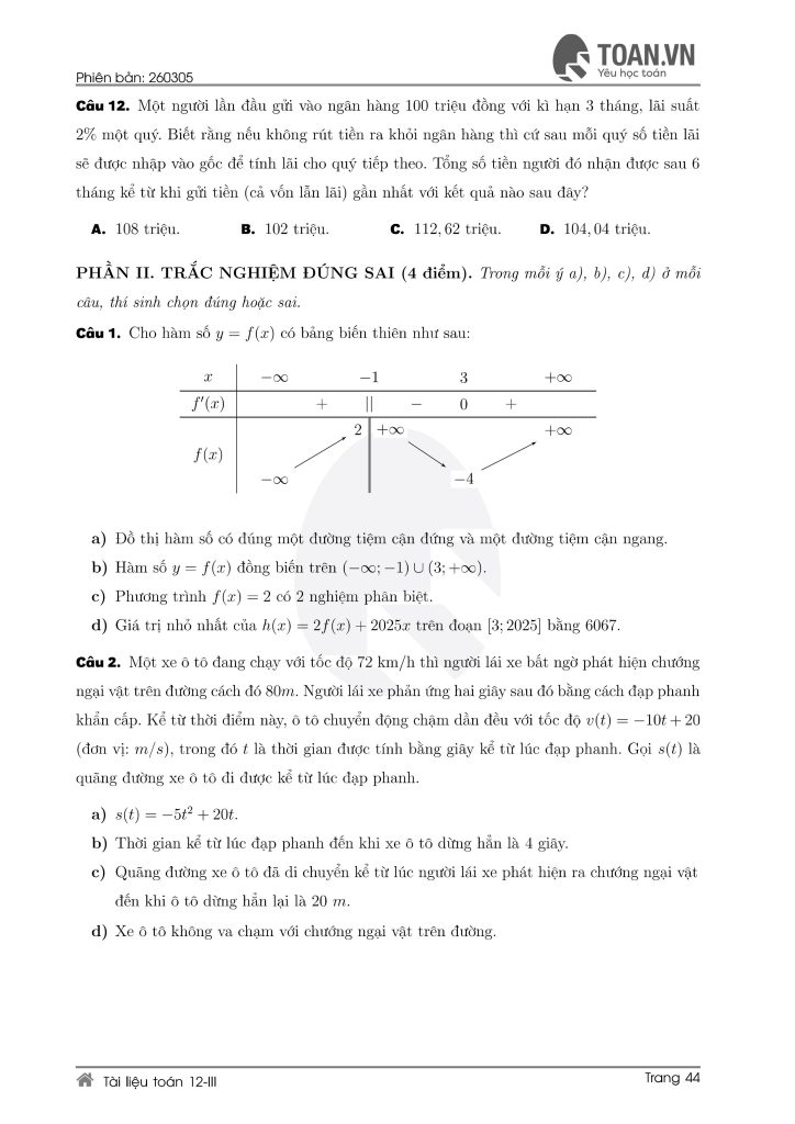 Các dạng đề ôn thi Toán lớp 12 phổ biến hiện nay