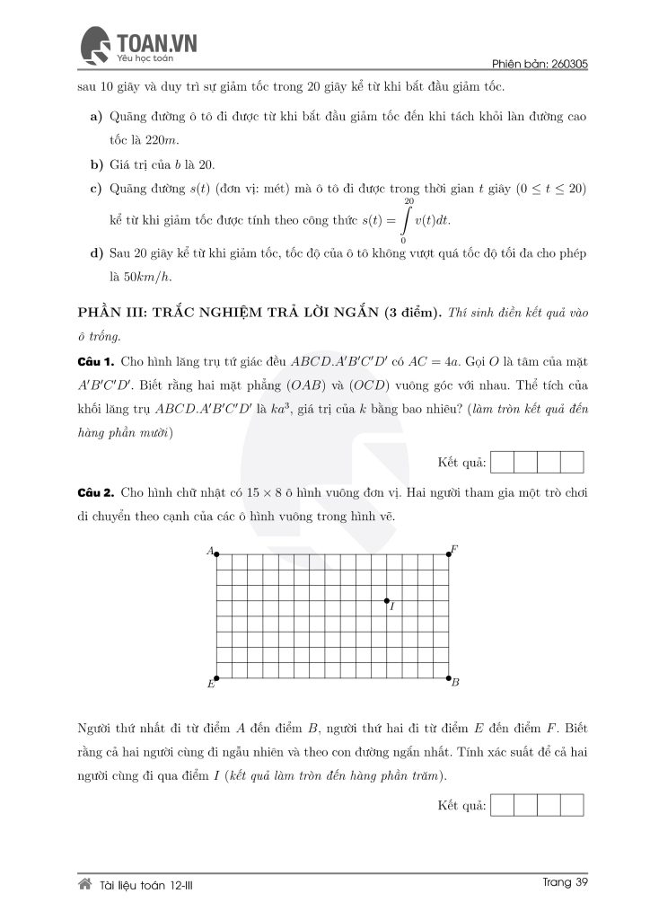 - Xây dựng chiến lược làm bài (làm câu dễ trước, câu khó sau).